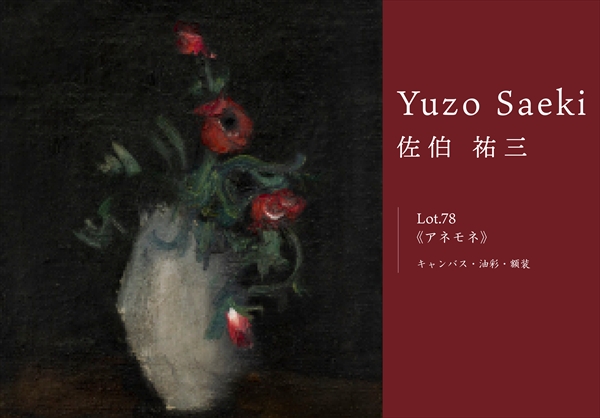 佐伯祐三は短くも鮮烈な人生と、絵画への情熱がこめられた数々の傑作によって、没後100年近い今なお人々の心をとらえています。画業の短さゆえに残された作品数は少なく、今回出品作は花をモチーフとする希少な1作です。暗く陰鬱な空間は画家の内面を偲ばせ、それでいて力強い筆づかいは芸術への信念を表し、その人生を知れば知るほどに画家自身の姿と重なるような、不思議な魅力を放ちます。